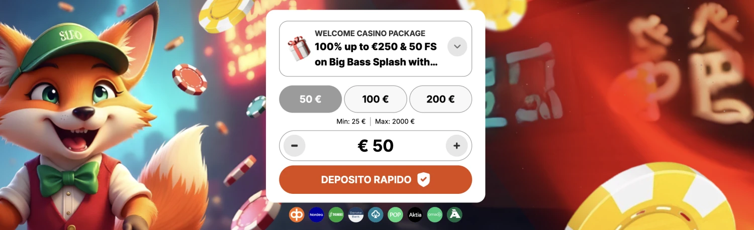 Le nostre opzioni di benvenuto includono: 125% fino a €400 (deposito minimo €25), 80% fino a €600 (deposito minimo €25) e 100% fino a €200 (deposito minimo €25), ciascuna con wagering 30x su (deposito + bonus). Offriamo anche un Bonus di Benvenuto Esclusivo del 150% fino a €1.000 + 100 giri gratis con deposito minimo €10 e wagering 35x sul bonus. Richiedi la tua scelta dopo la registrazione tramite Cassa e sezione promo e conferma il limite di tempo mostrato nel tuo pannello bonus. Per un gioco più sicuro, mantieni le puntate entro eventuali regole di puntata massima indicate nella pagina dell’offerta.