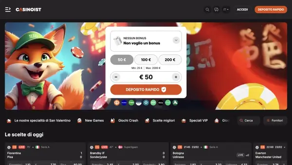 Ospitiamo 14.500 giochi da casinò con una navigazione basata su filtri rapidi. Le slot sono la categoria principale, ma puoi anche passare alle sezioni tavoli, alle sale live e a un’area sportsbook senza uscire dalla lobby principale. Per i giocatori che esplorano Casinoist per la prima volta, suggeriamo di usare la barra di ricerca per trovare uno studio e poi salvare i preferiti per tornare facilmente. Ogni pagina gioco mostra dettagli chiave, così puoi confrontare le caratteristiche prima di impegnare fondi reali.